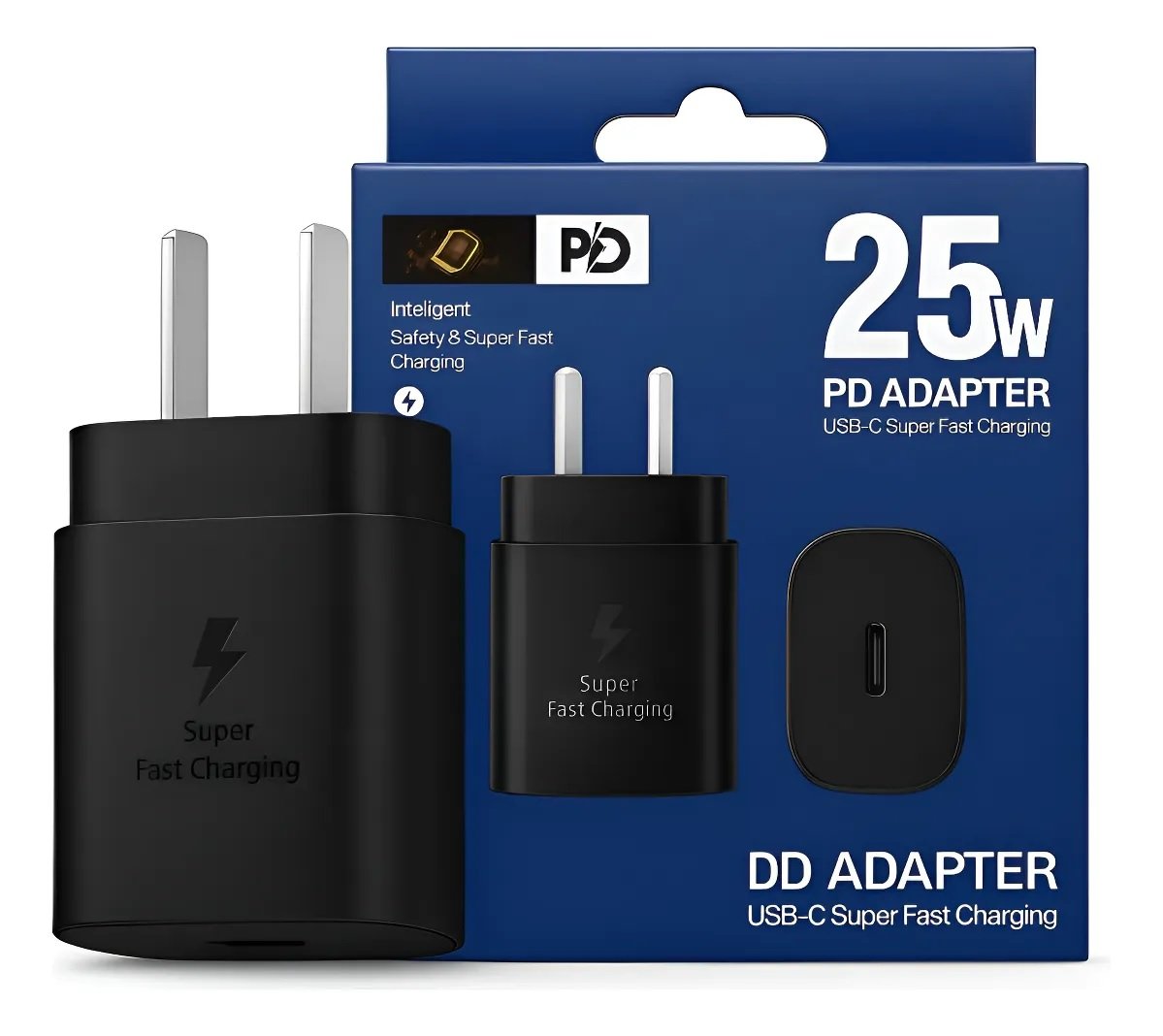 Adaptador de carga rápida de 25W. Calidad EXCELENTE. Características: Carga rápida de hasta 25W con tecnología Super Fast Charging Compatible con dispositivos USB-C que admitan carga rápida Protección contra sobrecalentamiento, sobrecarga y cortocircuitos Diseño compacto, ligero y resistente Entrada de voltaje universal (100-240V) Salida USB Tipo-C Ideal para smartphones, tablets y otros dispositivos compatibles